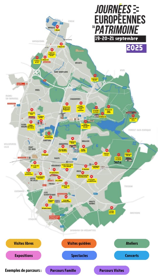 Voici un exemple de parcours pour profiter des visites guidées. Bien sûr ce n’est qu’un exemple, n’hésitez pas à créer votre propre parcours !
