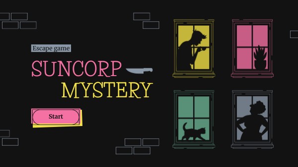 This is a test for new recruits! Yes, you, guys. We need to know, after all, if we can trust you to be competent, efficient agents!You will be faced with a serie of mysteries and questions. Answer it all, and you'll get an upgraded access to the Suncorp's office!