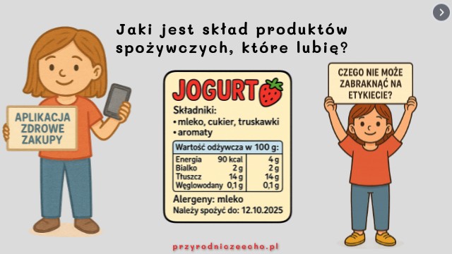 Aplikacji takich jest wiele. Aplikacja „Zdrowe Zakupy” to program na telefon, który pomaga sprawdzić, czy jedzenie w sklepie jest zdrowe. Wystarczy zeskanować kod kreskowy z opakowania (takie czarne kreski), a aplikacja pokaże: czy w produkcie jest dużo cukru, tłuszczu albo soli, jakie są składniki,czy są tam alergeny (np. mleko, gluten), i da ocenę: czy to zdrowy wybór. To tak jakbyś miał mądrego pomocnika w sklepie, który podpowiada: „Ten produkt jest OK” albo „Lepiej wybierz inny”.