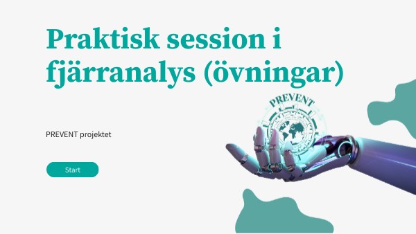 Följande praktiska övningar är utformade för att integrera fjärranalysteknik i strategier för förebyggande och begränsning av katastrofer, i linje med de centrala målen för PREVENT-projektet.Varje övning fokuserar på verkliga tillämpningar av geografiska informationssystem (GIS) och analys av satellitbilder , vilket ger studenterna tekniska färdigheter inom rumslig analys, miljöövervakning och beslutsfattande för katastrofhantering.