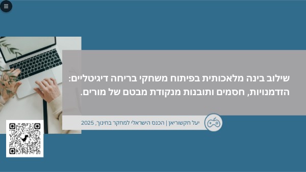 שילוב בינה מלאכותית בפיתוח משחקי בריחה דיגיטליים: הזדמנויות, חסמים ותובנות מנקודת מבטם של מורים.
