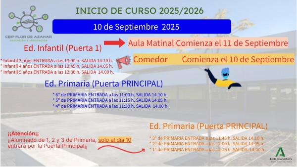 ¡¡Atención¡¡ ¡¡Alumnado de 1, 2 y 3 de Primaria, solo el día 10 entrará por la Puerta Principal¡¡