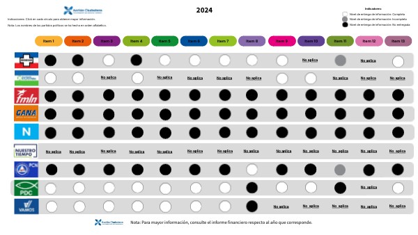 Indicaciones: Click en cada círculo para obtener mayor información. Nota: Los nombres de los partidos políticos se ha hecho en orden alfabético.