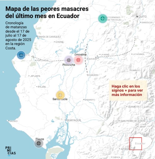 Cronología de matanzas desde el 17 de julio al 17 de agosto de 2025 en la región Costa.