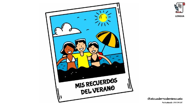 “Tardes de bicicleta en casa de los abuelos” Cada verano vamos al pueblo de mis abuelos. Me encanta porque no hay coches y puedo ir en bici por todas partes. Una tarde, mis primos y yo hicimos carreras por los caminos de tierra hasta que se escondió el sol. Al volver, mi abuela nos esperaba con sandía fresquita. Todavía recuerdo el sabor dulce y frío, y cómo nos reíamos. Para mí, el verano huele a campo y sabe a sandía.