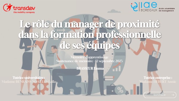 - Le rôle du manager de proximité au sein d'une organisation - La formation professionelle - Le lien entre manager et formation