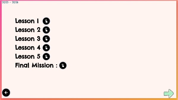 Lesson I Lesson 2 Lesson 3 Lesson 4 Lesson 5 Final Mission :