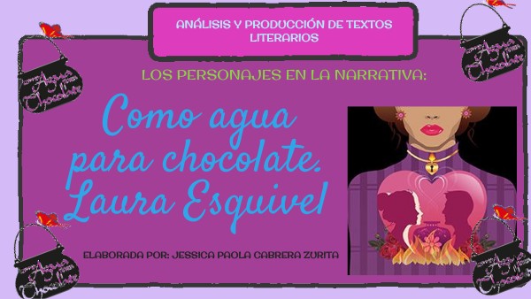 REFERENCIAS: Esquivel, L. (2010), Como agua para chocolate, Suma de letras. Bánes, G (1993),La relación autor/lector en la literatura didáctica:requisitos y modalidades,Crítico, 58,pp.103-116 https://cvc.cervantes.es/literatura/criticon/PDF/058/058_101.pdf Crespo, G, (1999), La comunicación literaria y el tipo de lector modelo que propone la actual literatura infantil, Educación y bliblioteca, 115 https://core.ac.uk/download/pdf/9533763.pdf