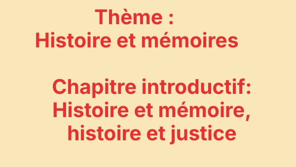 Chapitre introductif: Histoire et mémoire, histoire et justice