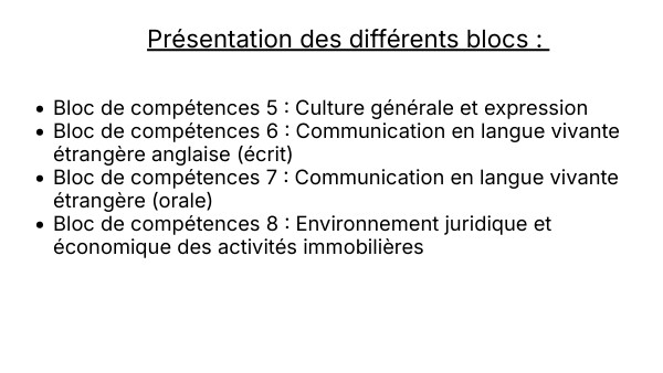 - Bloc de compétences 8 : Environnement juridique et économique des activités immobilières