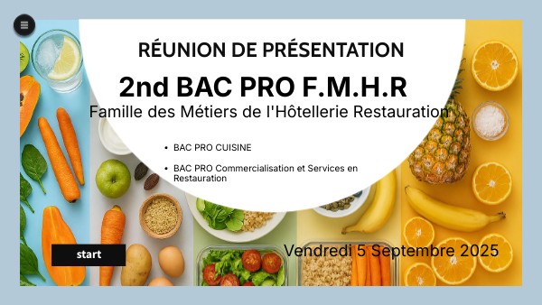 La formation se caractérise par un parcours de 3 ans ( 1an de tronc commun + 2 ans de spécialisation) visant à former au métier du secteur de la restauration En second F.M.H.R l'élève réçoit des enseignements en tronc commun ( sercice et cuisine) . il y a donc des cours de pratique de Service en restaurant et des cours de pratique en cuisine . A l'issu de l'année de seconde, il se positionnera dans l'option de son choix pour ses années de première et de terminale BAC PRO afin de se spécialiser.