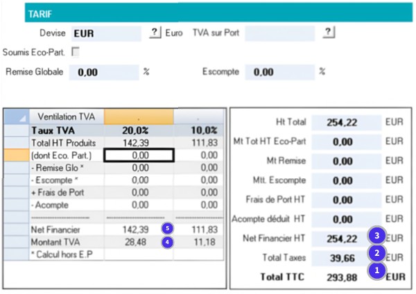 Le Net financier à 10% de TVA représente 372,77/847,41 du Net Financier total.