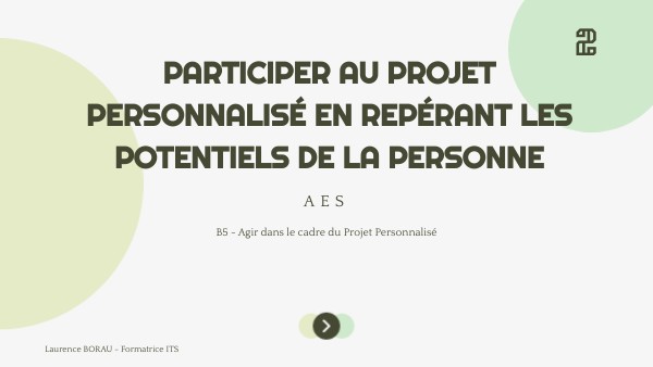 Présentez au reste du groupe : - Synthèse de l'analyse. - Présentation du projet personnalisé. - Justification des choix d'accompagnement.