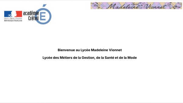 Bienvenue au Lycée Madeleine Vionnet Lycée des Métiers de la Gestion, de la Santé et de la Mode