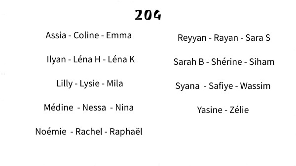 Manon - Mathéo - Nathan F.Nathan S. - Nolan - Rosy Souad - Soumeyya - Taslima