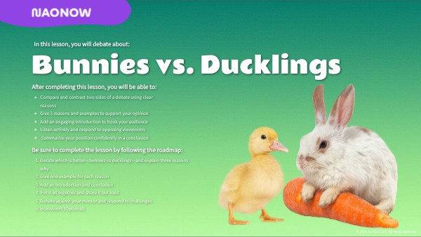 - Decide which is better—bunnies vs ducklings—and explain three reasons why