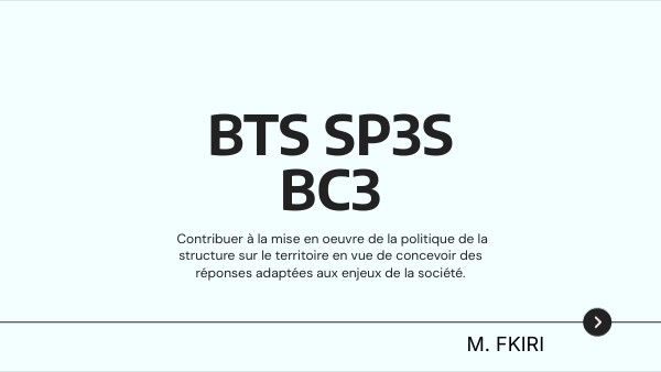 Objectif : Contribuer à la mise en place de la politique sur le territoire en vue de concevoir des réponses adaptées aux enjeux de la société Epreuve E4 : Politique de la structure et du territoire