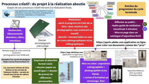 Sauf signalement contraire, les productions (croquis, réalisations, traces des recherches, photographies, ....) peuvent être matérielles ou immatérielles (numériques).