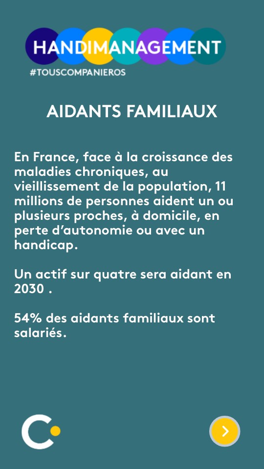 En France, face à la croissance des maladies chroniques, au vieillissement de la population, 11 millions de personnes aident un ou plusieurs proches, à domicile, en perte d’autonomie ou avec un handicap. Un actif sur quatre sera aidant en 2030 . 54% des aidants familiaux sont salariés.