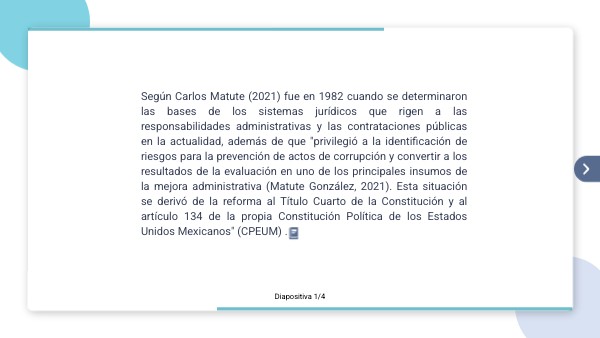 Según Carlos Matute (2021) fue en 1982 cuando se determinaron las bases de los sistemas jurídicos que rigen a las responsabilidades administrativas y las contrataciones públicas en la actualidad, además de que "privilegió a la identificación de riesgos para la prevención de actos de corrupción y convertir a los resultados de la evaluación en uno de los principales insumos de la mejora administrativa (Matute González, 2021). Esta situación se derivó de la reforma al Título Cuarto de la Constitución y al artículo 134 de la propia Constitución Política de los Estados Unidos Mexicanos" (CPEUM) .