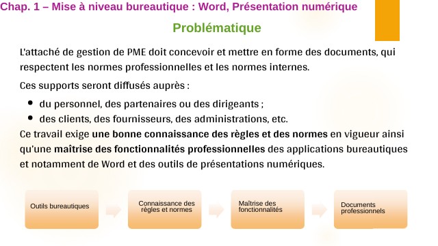 Chap. 1 – Mise à niveau bureautique : Word, Présentation numérique