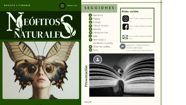 Para la revista Neófitos Naturales dedicada a jóvenes escritores, es importante que se sientan en total libertad de expresar lo que deseen. Por ello, sus nombres no aparecerán como tal, con el fin de mantener su anonimato. Sin embargo, para que el lector pueda identificarlos, se utilizará una serigrafía que represente la esencia de cada escritor (como animales, objetos, flores, entre otros).