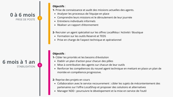 Objectifs : 1- Optimisation de l’offre LocalShop Identifier les leviers pour faire évoluer l’outil Wizishop en termes de fonctionnalités et d'ergonomie. 2- Créer une équipe complète de référents techniques capables de gérer la configuration, l’accompagnement client et des équipes internes ainsi que l’évolution des outils Reservit, Boutique, Resto et Agendize en collaboration direct avec nos prestataires externes pour un suivi constant et efficace. 3- Renforcer les relations avec les prestataires externes
