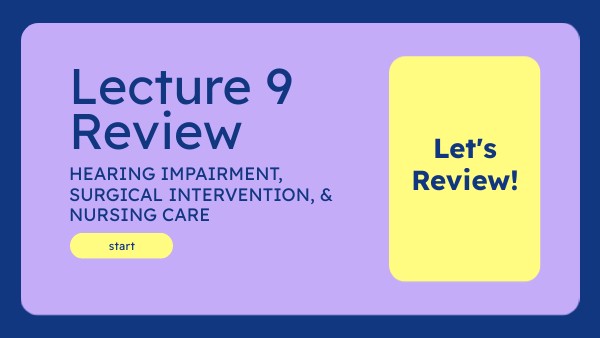 SS Lecture 9 Review- Hearing Impairment, Surgery, & Nursing Care
