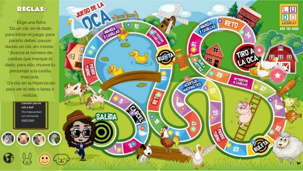 * Elige una ficha*Da un clic en el dado para iniciar el juego, para pararlo debes pausar dando un clic ahi mismo. * Avanza el número de casillas que marque el dado, para ello, mueve tu personaje a la casilla marcada.* Da clic en la Hiperviculo para ver el reto o tarea a realizar.