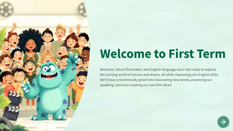 Welcome, future filmmakers and English language stars! Get ready to explore the exciting world of movies and drama, all while improving your English skills. We'll have a monstrously good time discovering new words, practicing our speaking, and even creating our own film ideas!