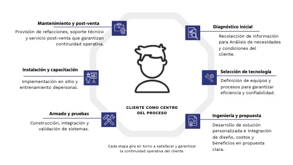 Cada etapa gira en torno a satisfacer y garantizar la continuidad operativa del cliente.