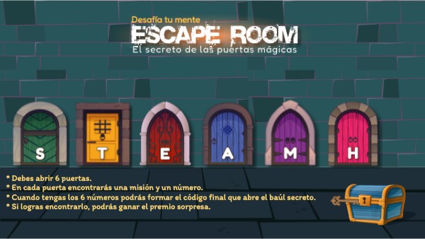 * Debes abrir 6 puertas. * En cada puerta encontrarás una misión y un número. * Cuando tengas los 6 números podrás formar el código final que abre el baúl secreto. * Si logras encontrarlo, podrás ganar el premio sorpresa.