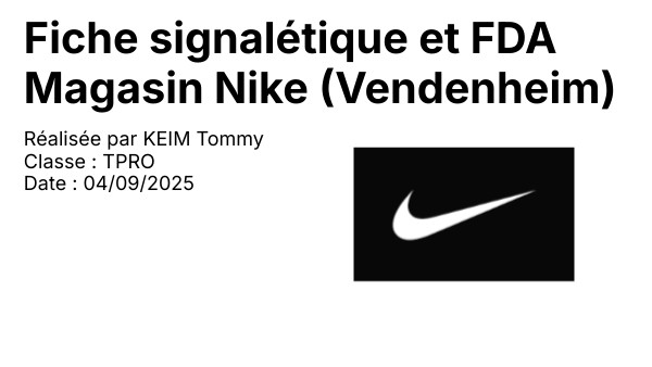 Fiche signalétique et FDA Magasin Nike (Vendenheim)
