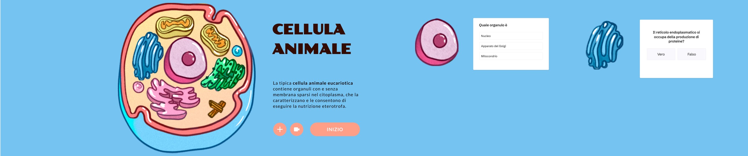 La tipica cellula animale eucariotica contiene organuli con e senza membrana sparsi nel citoplasma, che la caratterizzano e le consentono di eseguire la nutrizione eterotrofa.
