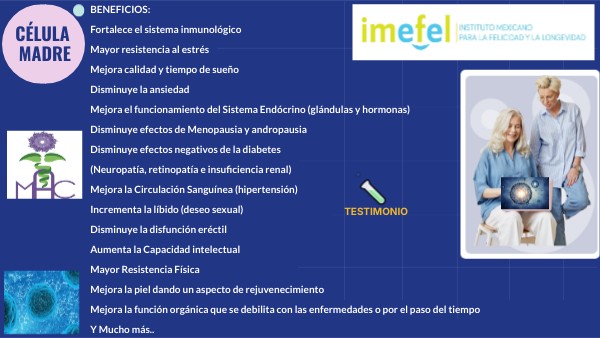 BENEFICIOS: Fortalece el sistema inmunológico Mayor resistencia al estrés Mejora calidad y tiempo de sueño Disminuye la ansiedad Mejora el funcionamiento del Sistema Endócrino (glándulas y hormonas) Disminuye efectos de Menopausia y andropausia Disminuye efectos negativos de la diabetes (Neuropatía, retinopatía e insuficiencia renal) Mejora la Circulación Sanguínea (hipertensión) Incrementa la líbido (deseo sexual) Disminuye la disfunción eréctil Aumenta la Capacidad intelectual Mayor Resistencia Física Mejora la piel dando un aspecto de rejuvenecimiento Mejora la función orgánica que se debilita con las enfermedades o por el paso del tiempo Y Mucho más.. m