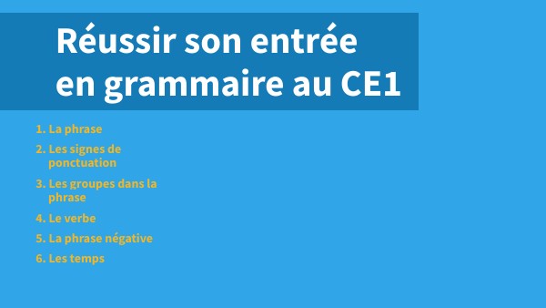 Réussir son entrée en grammaire au CE1