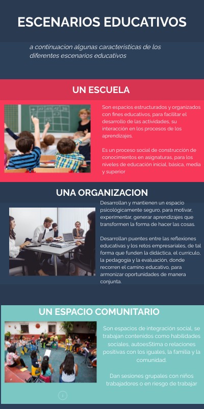 a continuacion algunas caracteristicas de los diferentes escenarios educativos