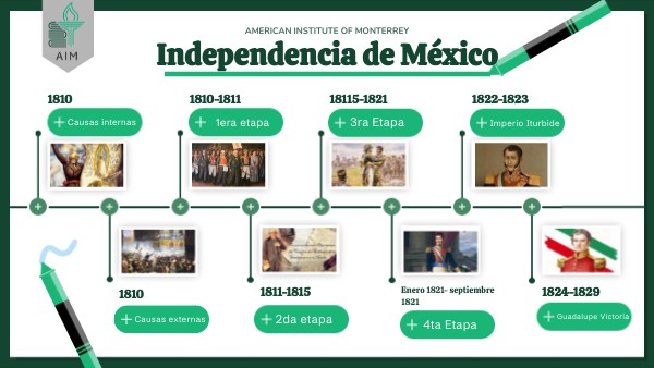 📜✨ Se proclama el Plan de Iguala. 🤝🇲🇽 Se firma la unión de federalistas y centralistas contra los españoles. 👥 2 personajes de la tercera etapa: 🛡️ Nicolás Bravo ⚔️ Vicente Guerrero