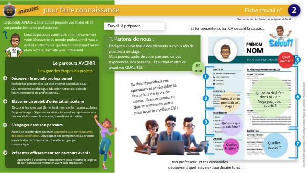 Et tu présenteras ton CV devant la classe...