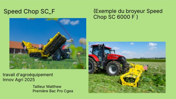 - Vitesse d'avancement : La vitesse de travail est de 20 km/h pour un broyage optimal