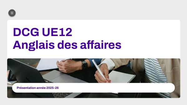 for more details consult the book DCG 12 Anglais appliqué aux affaires - Author(s): Rouby, Agnès - Publisher: Gualino - Collection: Les carrés DCG - Pub. Date: 2024