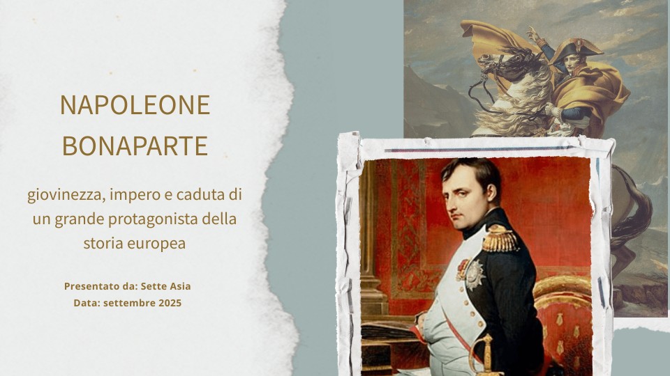 Napoleone Bonaparte nacque ad Ajaccio, in Corsica, nel 1769, da una famiglia della piccola nobiltà. Dopo gli studi militari a Parigi, entrò nell’esercito e divenne rapidamente generale, sostenuto anche dai suoi ideali repubblicani e rivoluzionari. Nel 1796, a soli 26 anni, fu messo a capo dell’Armata d’Italia e condusse una brillante campagna militare contro gli Austriaci, conquistando gran parte dell’Italia del Nord e entrando trionfalmente a Milano. Con questa impresa, Napoleone dimostrò di essere un abile stratega e guadagnò grande popolarità sia in patria sia all’estero. Successivamente fu inviato in Egitto per colpire gli interessi inglesi nel Mediterraneo, ma nonostante alcune vittorie, la flotta francese fu distrutta dall’ammiraglio Nelson. ( ) Tornato in Francia nel 1799, approfittò della crisi politica e organizzò il colpo di Stato, ponendo fine al Direttorio e diventando Primo Console.