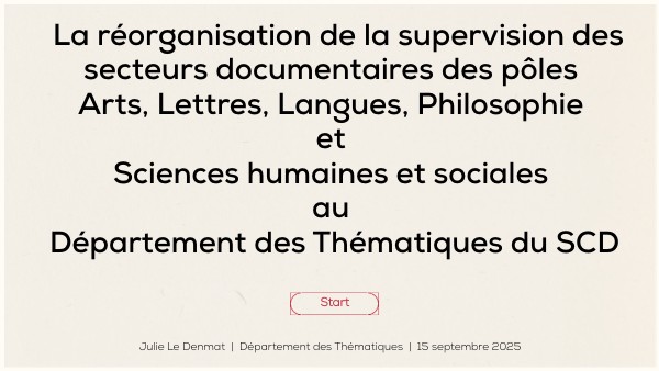 La réorganisation de la supervision des secteurs documentaires des pôles Arts, Lettres, Langues, Philosophie et Sciences humaines et sociales au Département des Thématiques du SCD