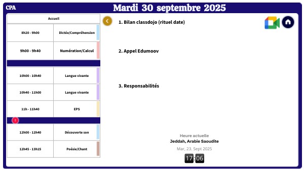 1. Bilan classdojo (rituel date) 2. Appel Edumoov 3. Responsabilités