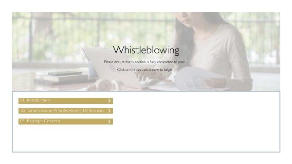 The purpose of this training is to encourage you to report genuine incidents of suspected wrongdoing as soon as possible.