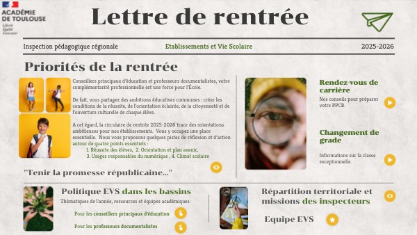 Lettre de rentrée, IA-IPR EVS 2025-2026