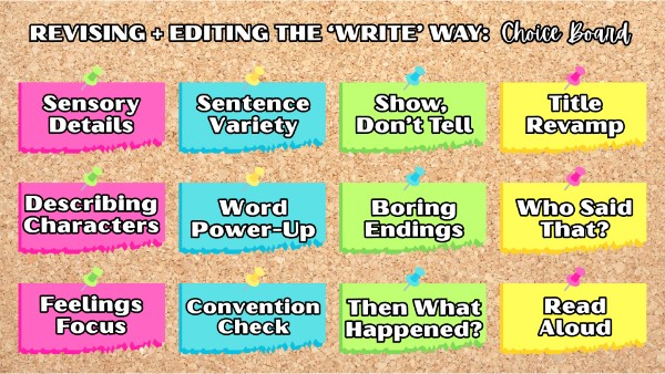 Unit 1 Meaningful Ideas: Revising + Editing Choice Board
