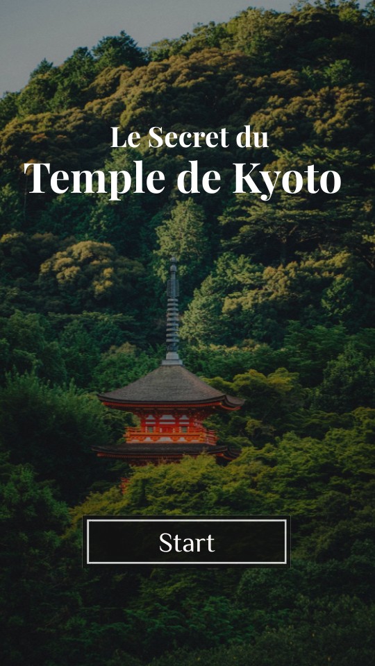 En visite à Kyoto, tu entres dans un vieux temple au cœur d'un jardin de bambous. La porte se referme derrière toi… Une inscription gravée dit : “Seul celui qui percera les énigmes des esprits pourra retrouver la lumière du jour.” Tu dois résoudre les énigmes des gardiens spirituels de Kyoto pour rouvrir la porte sacrée.