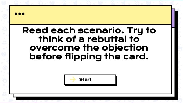 Read each scenario. Try to think of a rebuttal to overcome the objection before flipping the card.