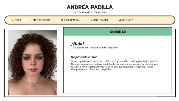 Soy una profesional metódica, cálida y comprometida con el aprendizaje práctico. Me especializo en estructurar modelos de negocio, aplicar conceptos contables en casos reales y desarrollar proyectos con enfoque saludable y espiritual. Busco siempre conectar ideas con propósito.